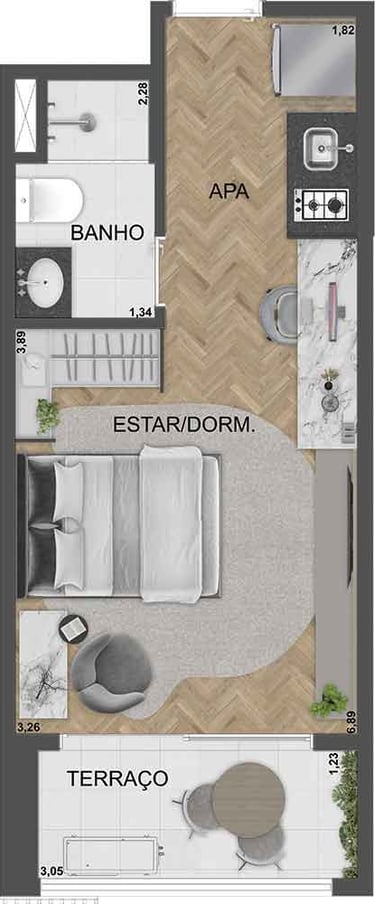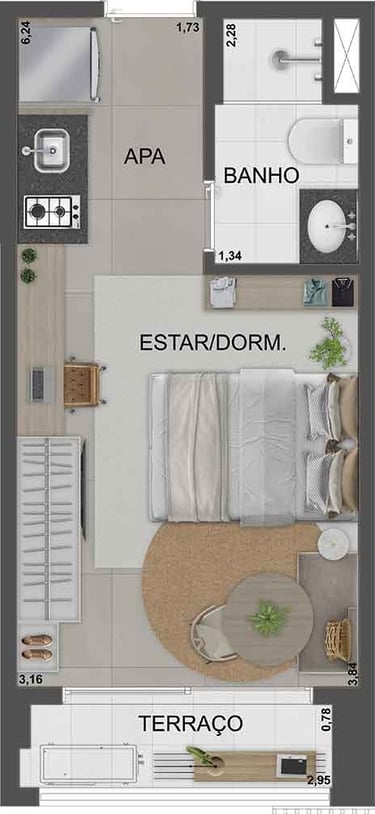 Studios 24m² a 30m² | 1 Dorm 34 e 35m²